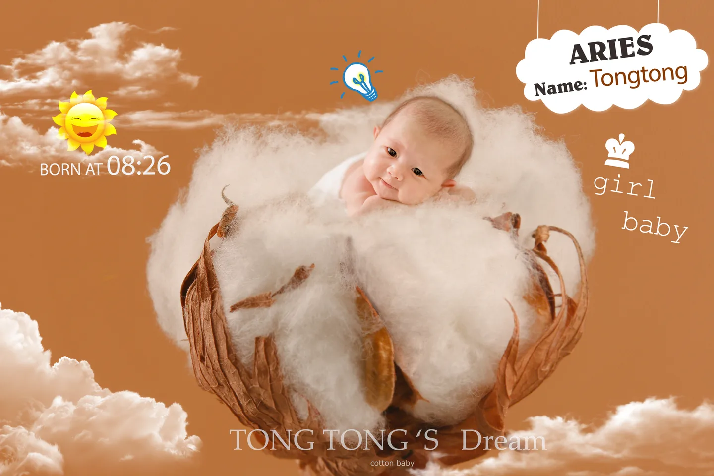 兔宝宝小名叫做桐桐,出生于2016年8月29日,3.35kg,女,出生时48cm~~求写有信息的换背景合成图~~求可爱~~求童话~~求大神接图~各种求~~谢谢大神!!!!
