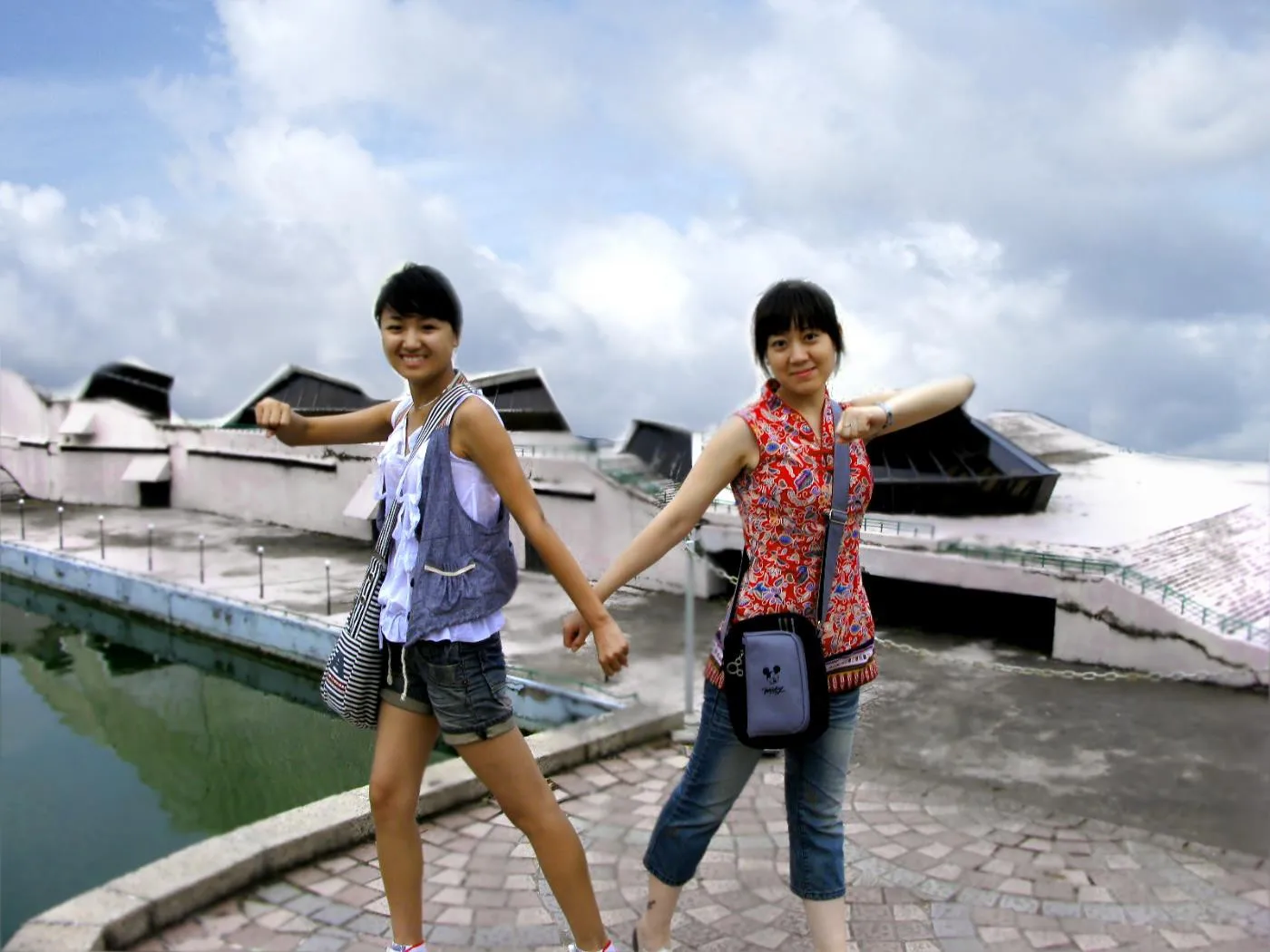 建筑残骸上坚强的俩姐妹