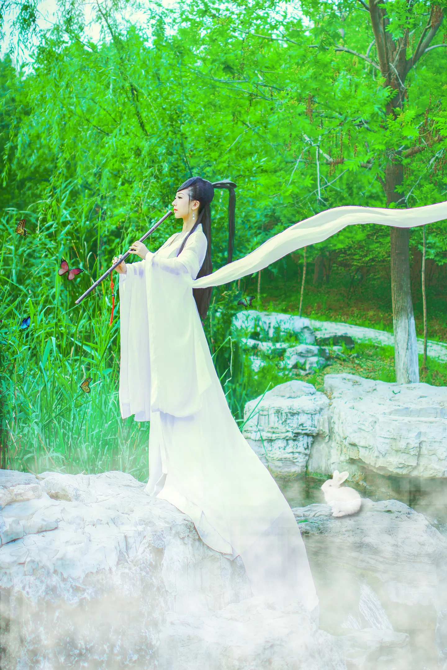 来抱大图喽,仙气缭绕,有了小兔兔和蝴蝶的陪伴,画面生动好多呀,谢谢大神
