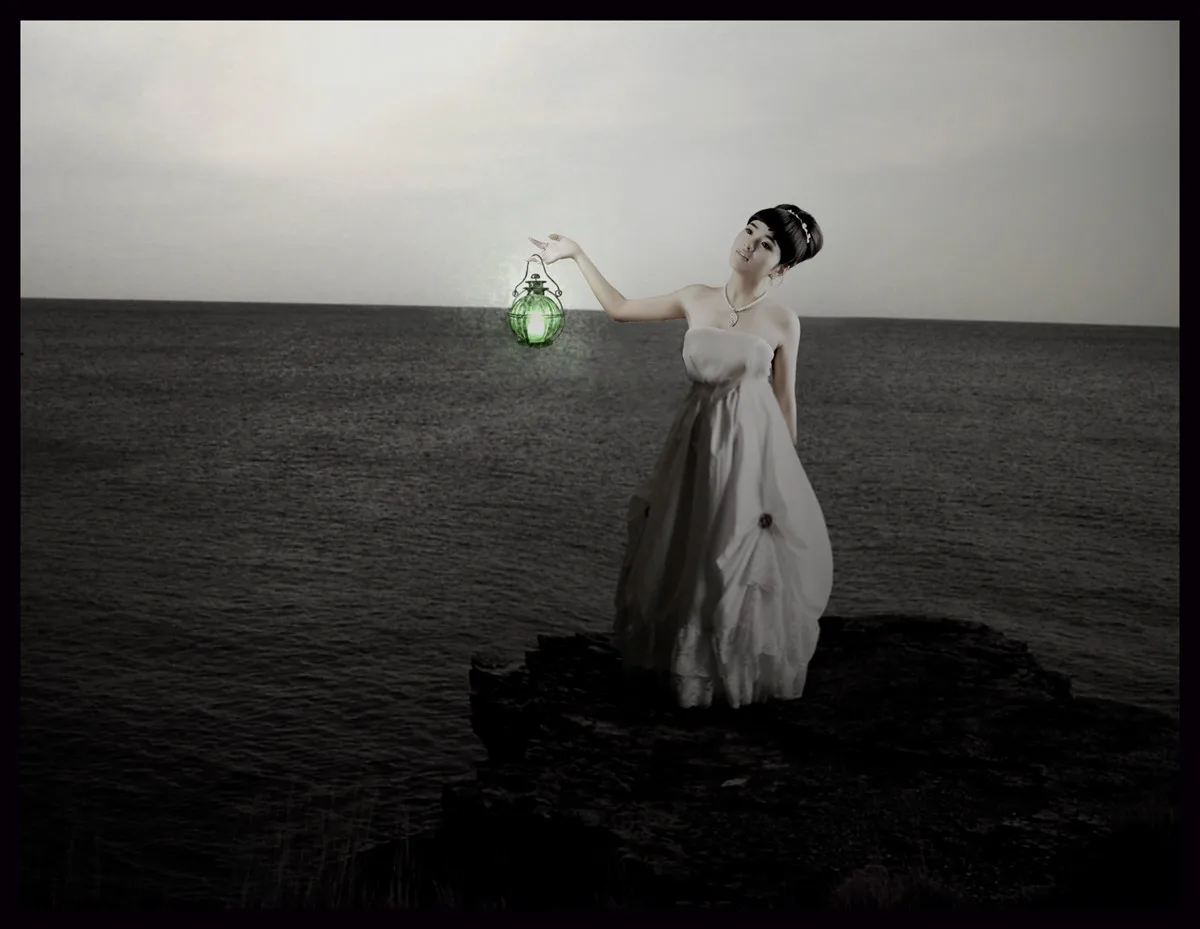 从人物身上看出光线是从右侧来,但是从石头和海面看光线都是从左后方来
