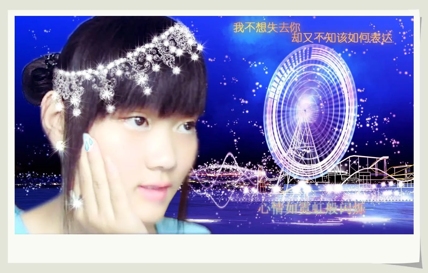 我想让浩宇恒留帮我做一下 肤色亮一点 加一点眼睫毛 眼睛大一点 背景稍微弄好一点 加上几个字 “我不想失去你 却又不知该如何表达” 谢谢! 背景:朦胧化 用途:娱乐 基调:严肃冷酷 用途:娱乐