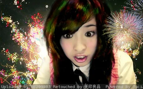 美化人物脸部,去掉斑点,美化突出眼睛。弱化鼻子和嘴巴(感觉不好看),体现粉嫩的皮肤,最好能结合兔子的形象,可爱,无害,单纯。背景也需要美化一下。可以参考http://cn.tucia.com/photo/78236/