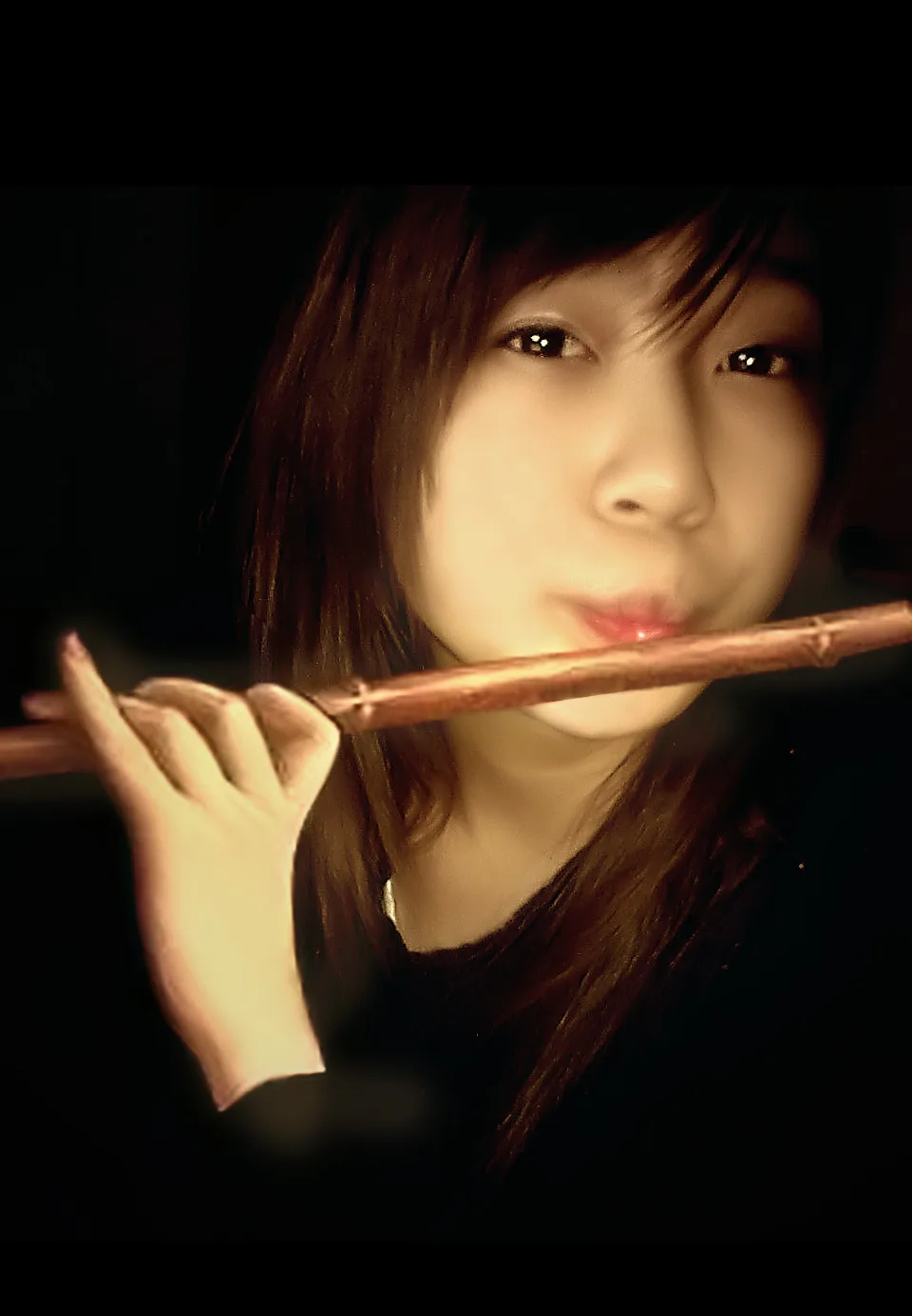 嘟着嘴,正好吹笛子