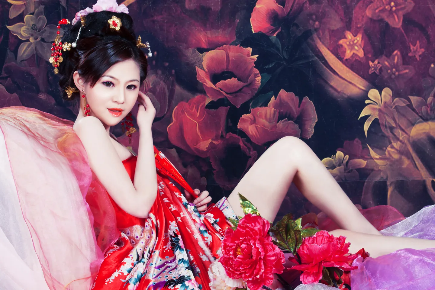 这个造型怎么说呢,首先妆面失败了,眉毛嘴唇都没化好, 脸型也不对,各种怪异,求达人能帮我P出这套虞美人的感觉出来 ,好歹这造有一张可以看看的 跪求