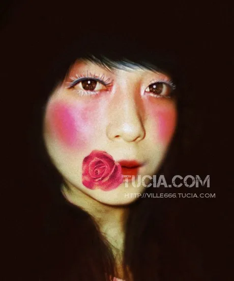 眼妆很艳丽...