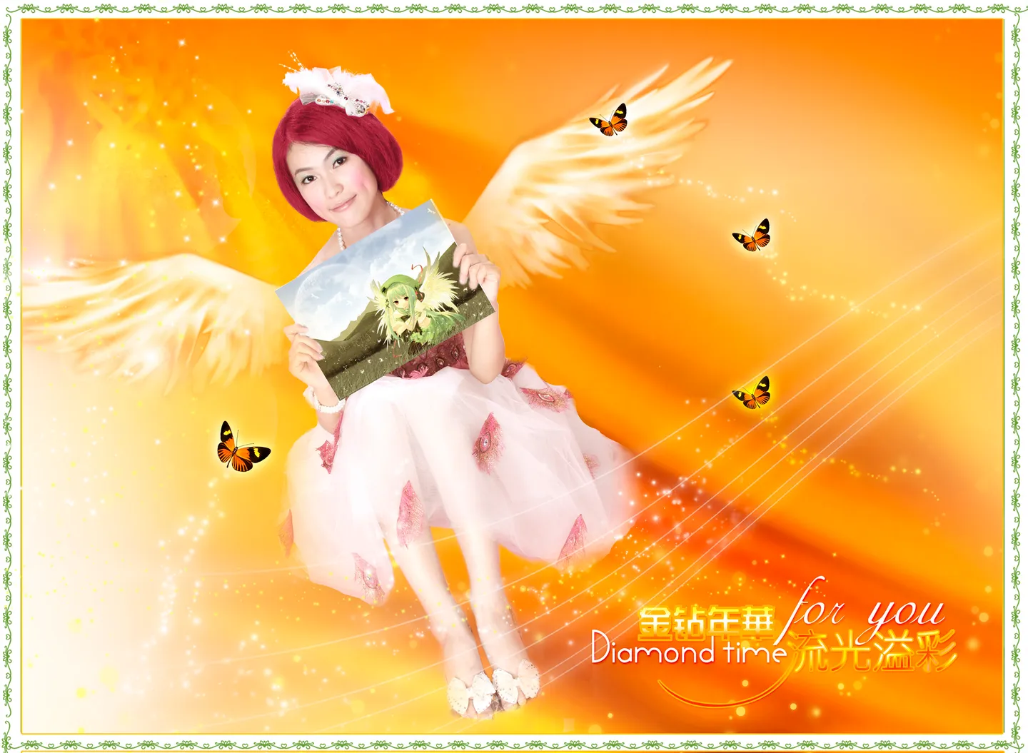 换背景,精修,能不能有个水晶翅膀,把happy那个去掉或者换个别的东西。谢谢亲啦