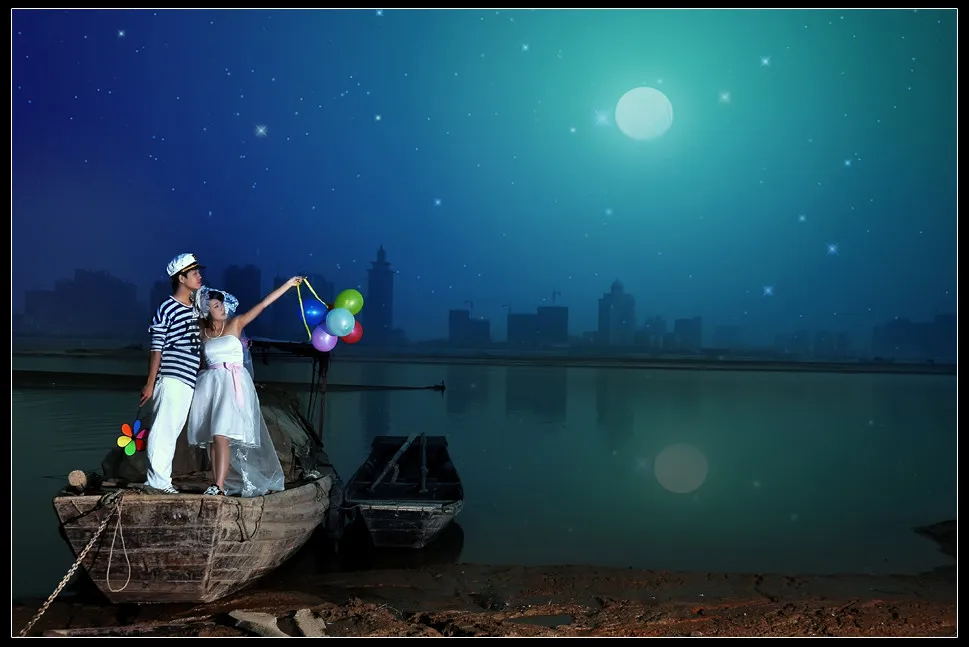 喜欢这个天空,不过不要有那个发光的星星会更真实点~月亮旁边是看不到很亮的星星的~