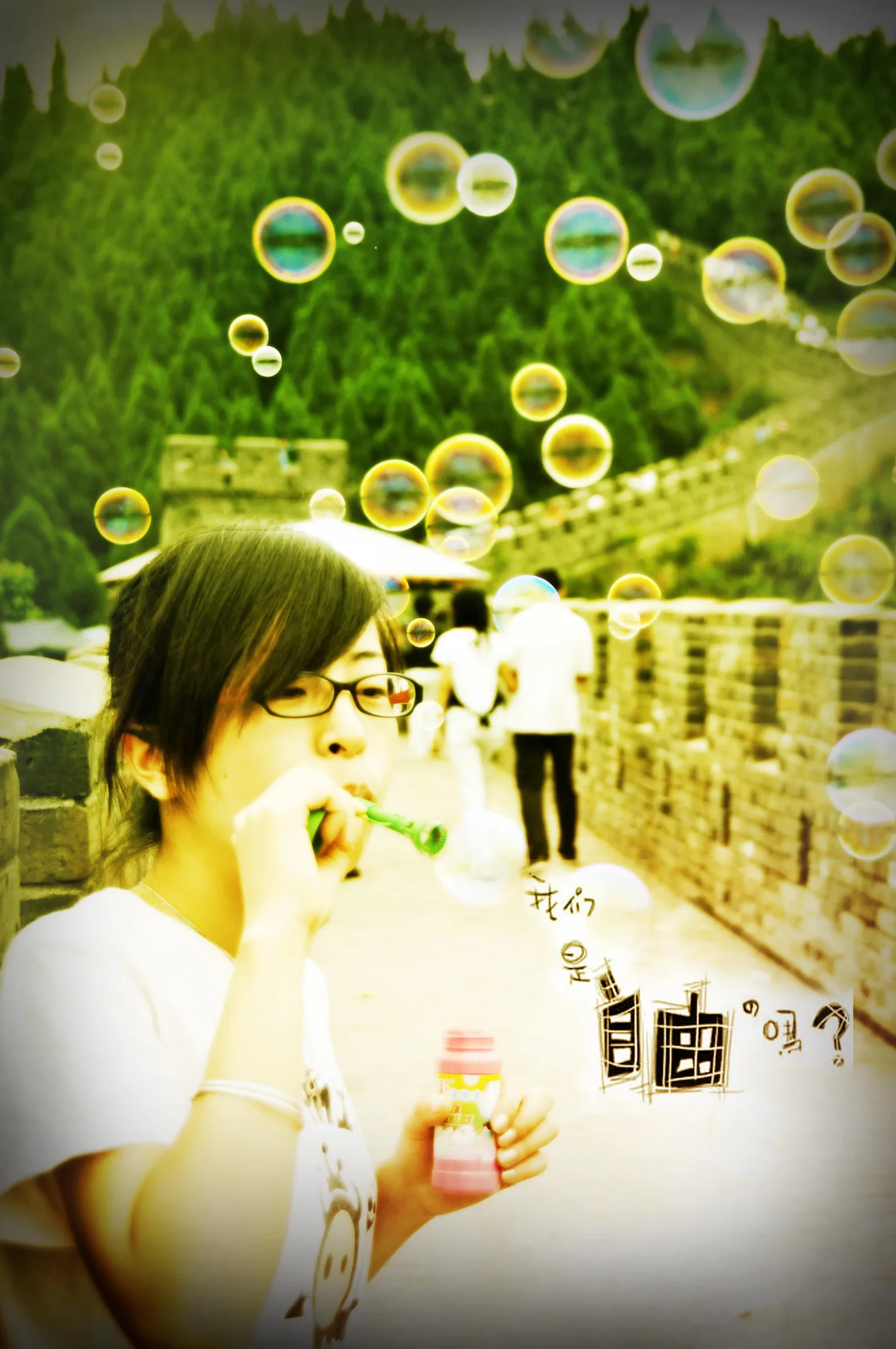 用途:家庭纪念 基调:典雅唯美 艺术化:轻微艺术化 背景:朦胧化 希望能保留泡泡和人,背景清理一下最好