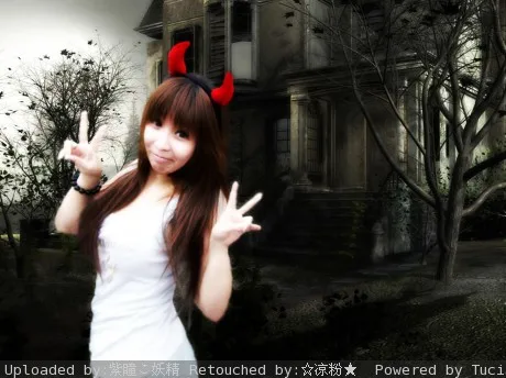 艺术化:深度艺术化 基调:典雅唯美 最好改成SD娃娃型的或古典型的 脸上肉肉很多... 背景换成其它吧...书包P掉!