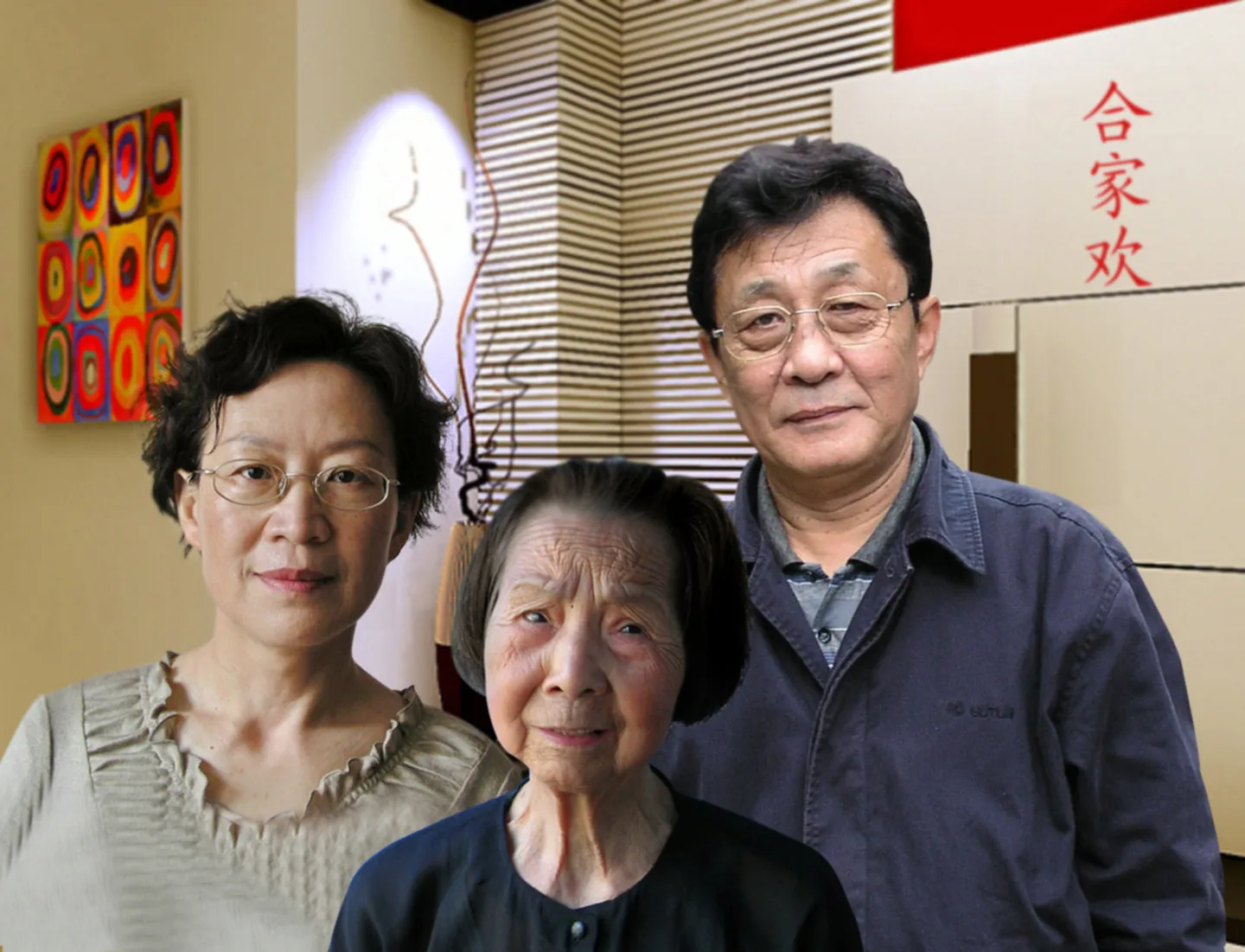 把我外婆的照片和他远在沈阳的亲人弄个合照啊 我的最大的梦想,三合一,请求大师们能合的好点啊,谢谢 远亲是几年前找到的,失散几十年了,我外婆的哥哥的女儿,现在他哥哥走了就剩下他们了,不过没时间去那啊,我外婆也老了,所以那是我的梦想之一