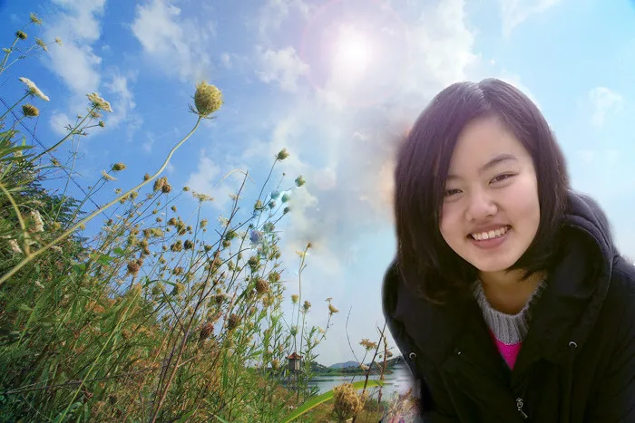美化人物脸部, 给人物换一个好看的背景 基调:欢悦明快的 艺术化:轻微艺术化