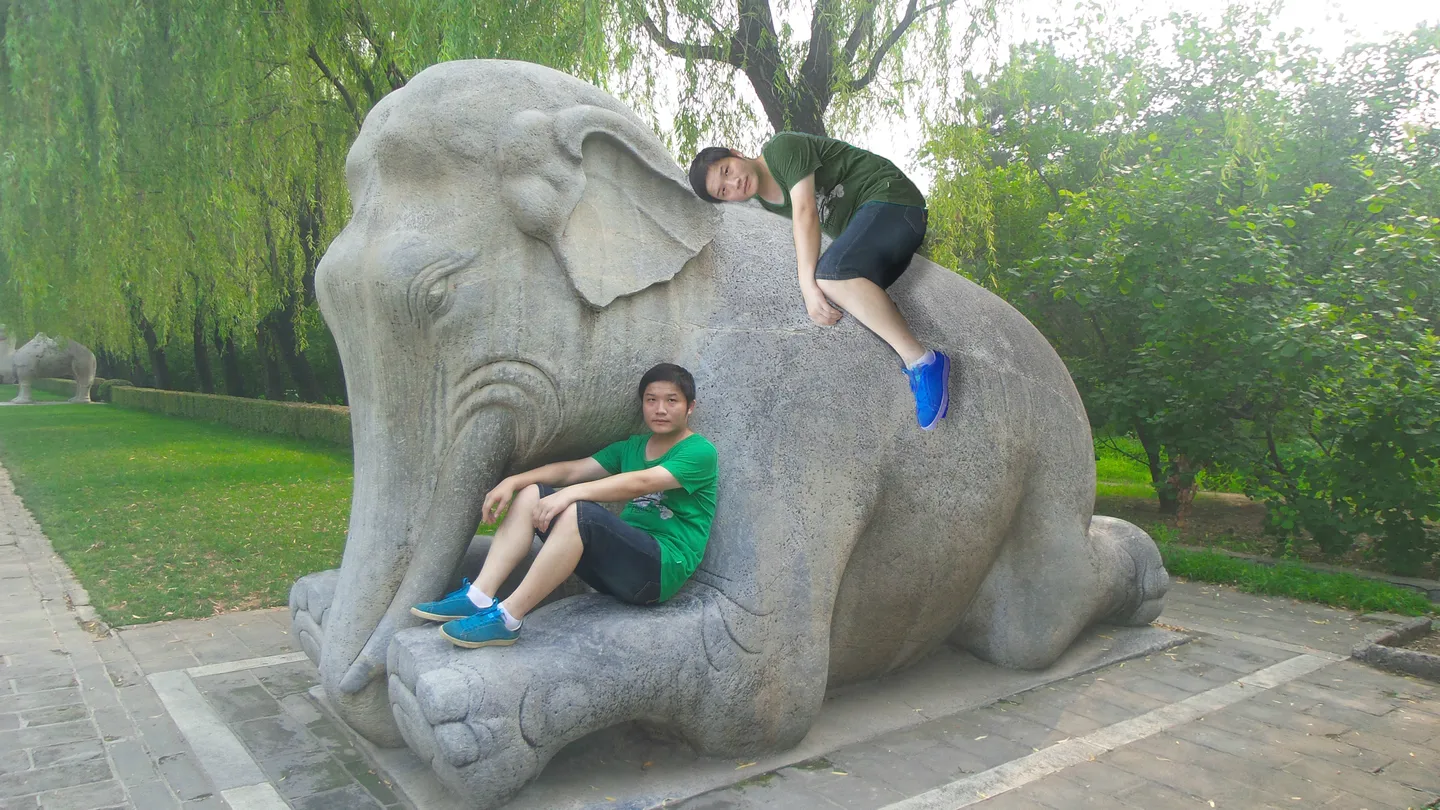 再弄个我(换件衣服) 骑在象背上 做出个双胞胎的感觉 麻烦大师了