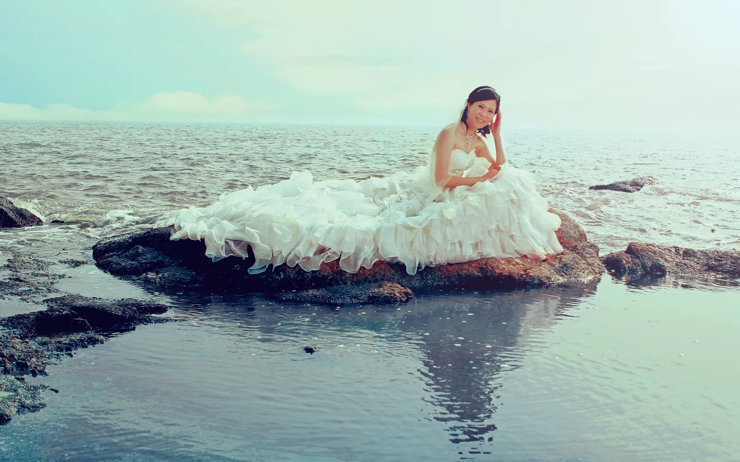 请帮忙美化背景,天空、海水加蓝,谢谢!!!