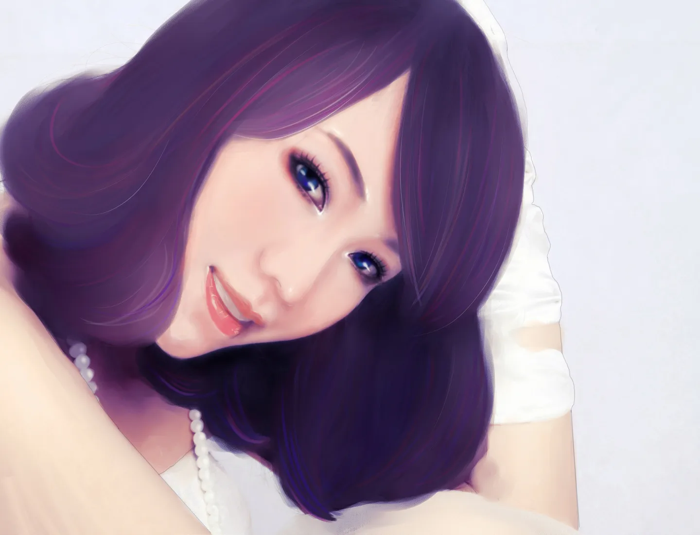看了又看啊。颜色很美。紫色调给人浪漫神秘的感觉。很棒。。但是就像作者说的。头发精致度跟不上啊。为什么不精呢。也许是层次没出来。太过平涂了。。。脸很细致很美好,加油