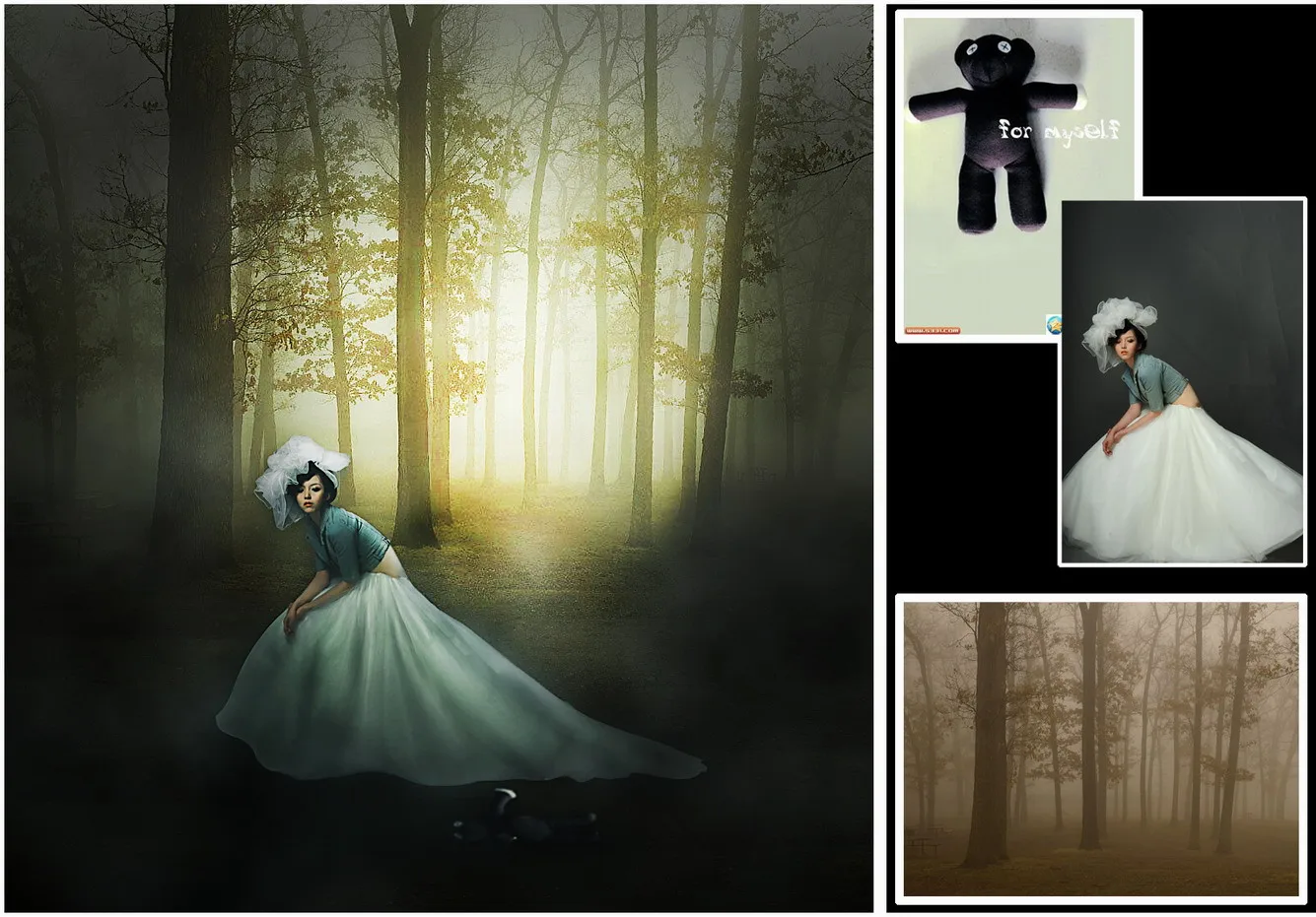 森林中迷路的感觉吧,换一个好看的背景 呵呵,求精修,谢谢······ 美化人物脸部 美化身材/体型 换一个好看的背景