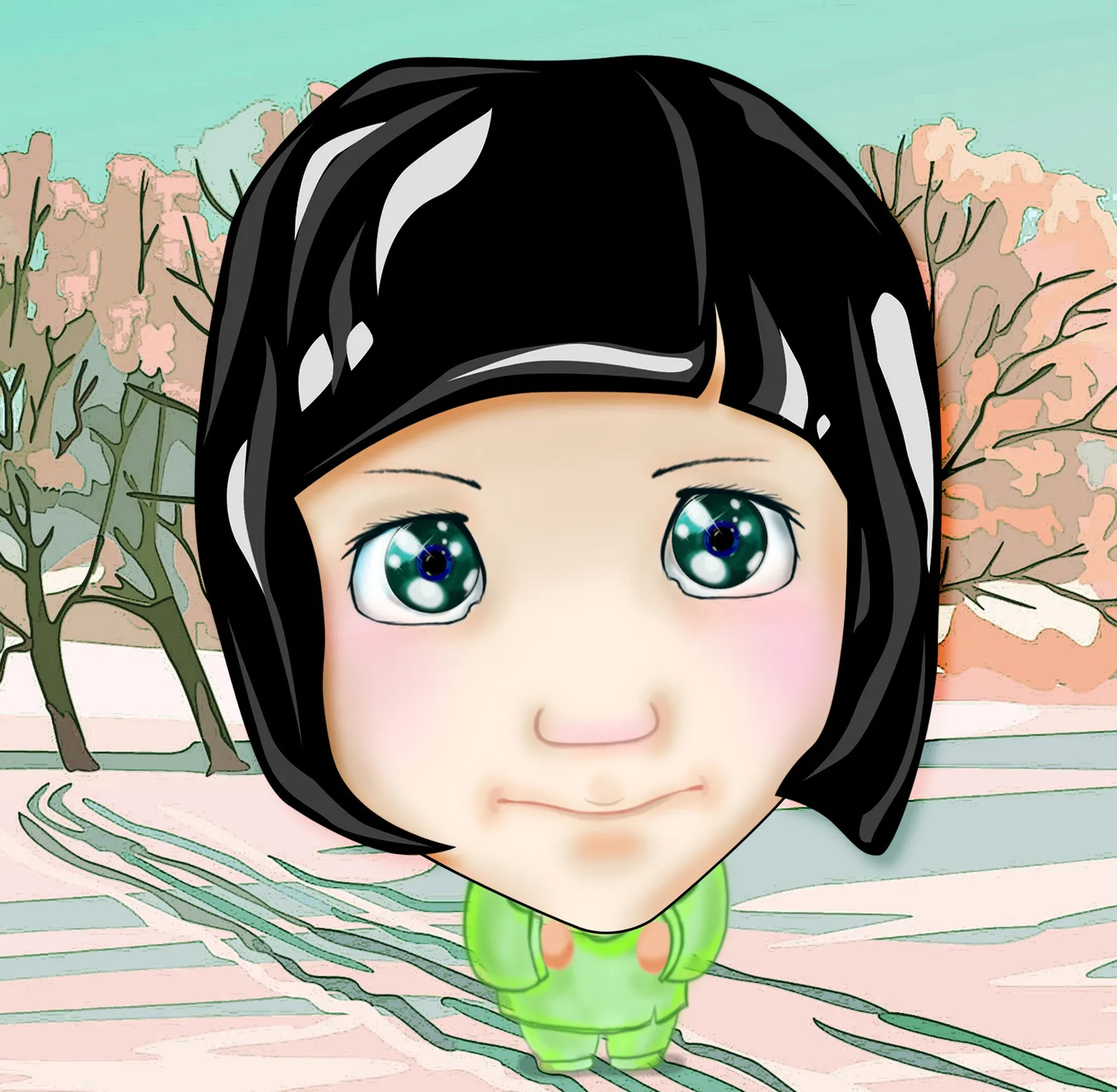 已指定 爱静的查理 亲!! 好喜欢你画的,可以帮我画一张嘛 先谢谢你了 希望你能接 ^_^ 把人物卡通(漫画)化 给人物换一个好看的背景