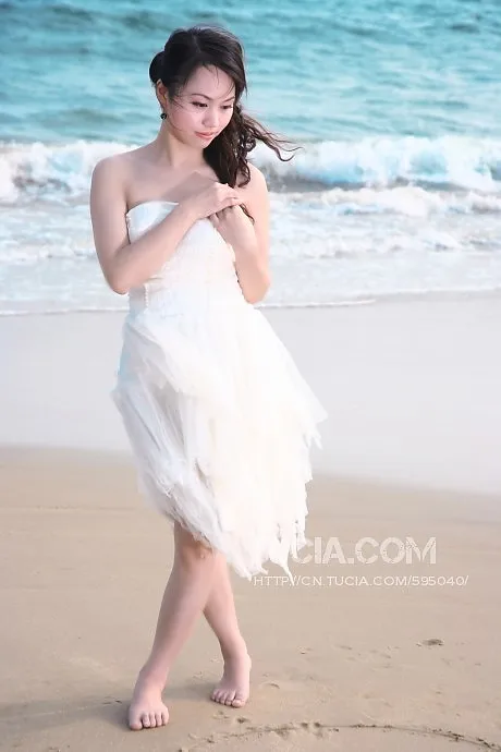 请帮我把海水修蓝,整个照片色泽处理下,脸上碎头发修掉,腿部美化下。谢谢!
