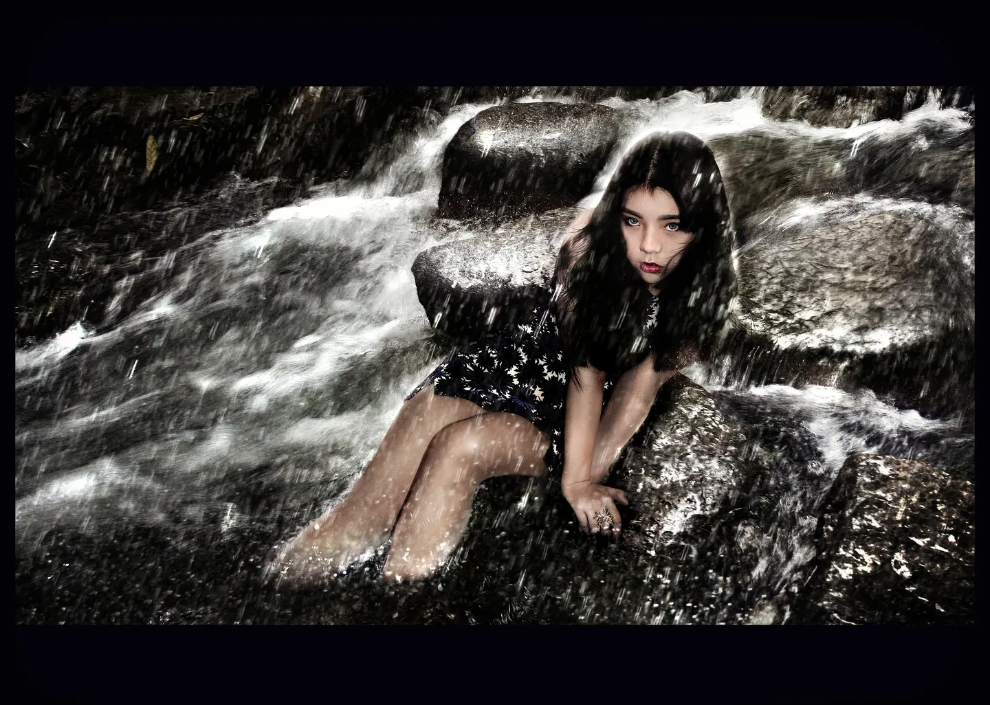 裙子也做了投影,腿部溅起的水花。。真的特别有雨神夏君(每张图必须下雨有木有,不下心里难受!)的风格,从色调到对质感的追求。现在想起来夏君给安妮做的大胸下雨图(咦怎么这样关注点不对