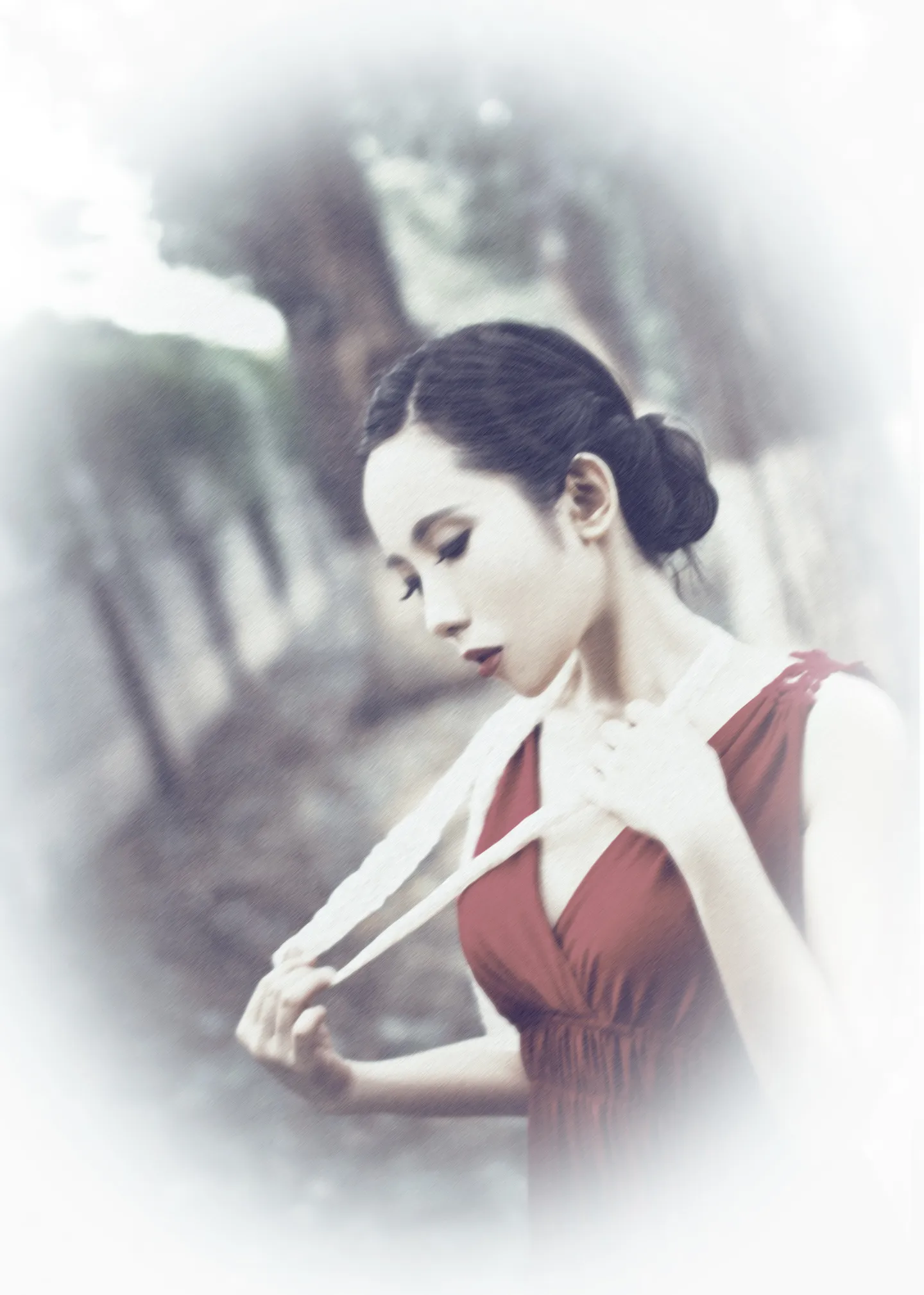求手绘,言情风格最好,蕾丝带换成项链啥的都行