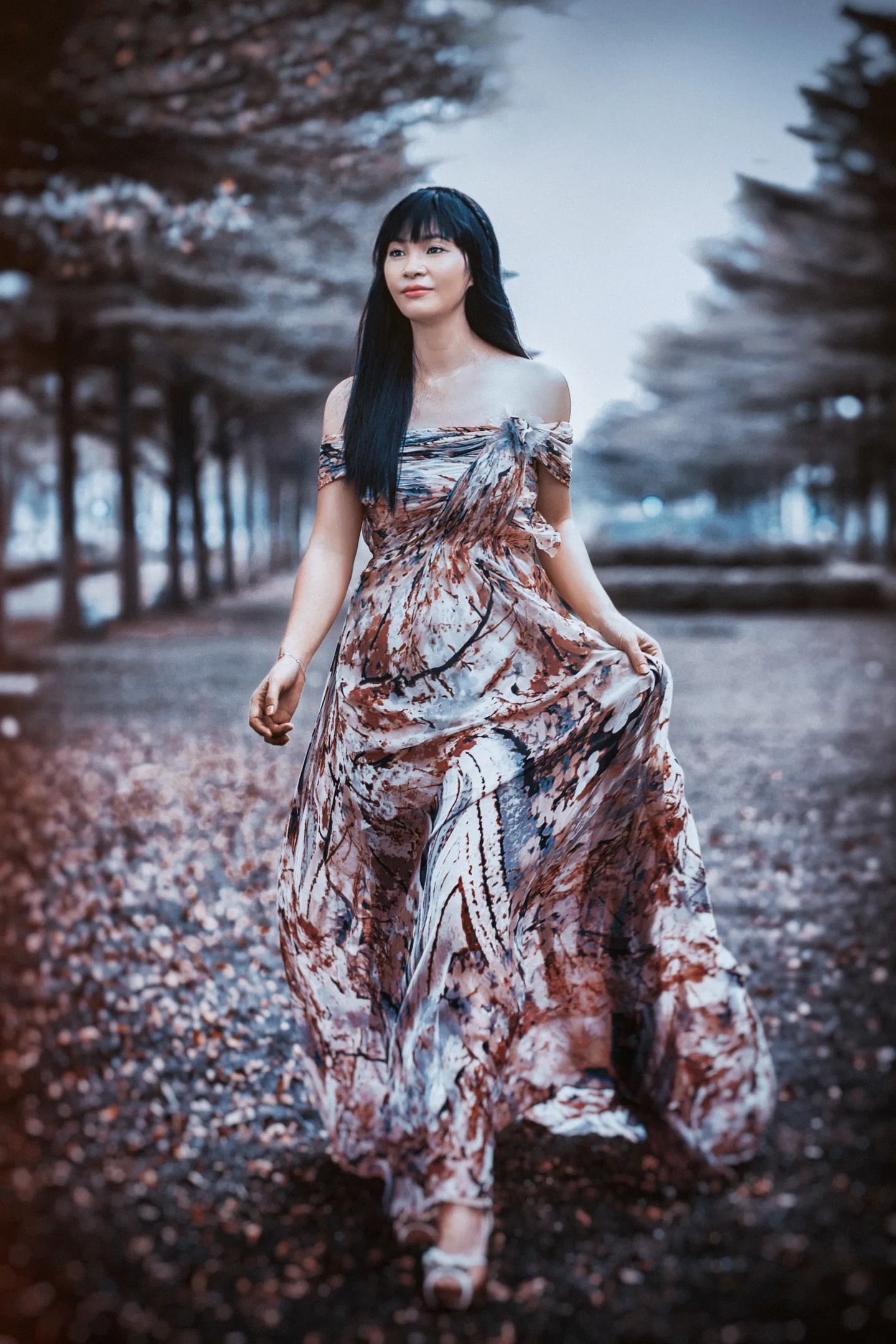 调完之后色调好特别,让人难忘。。这深沉绚烂的大裙摆。。。
