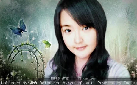 亲``帮我把头发处理一下吧``剩下的你觉得怎样有创意就怎样弄吧``不过不要血腥和手绘的类型`` 美化人物脸部 给人物换一个好看的背景