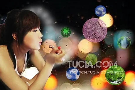 为什么这几次都写不成烘焙笔记呢~你要的吹泡泡的效果。最近正好在收集水晶球效果的泡泡。。照片的像素有点低,做图的时候改皮肤非常难改。。。我重新用鼠标做了点类似皮肤颜色的色块~~~(*^__^*) 嘻嘻……