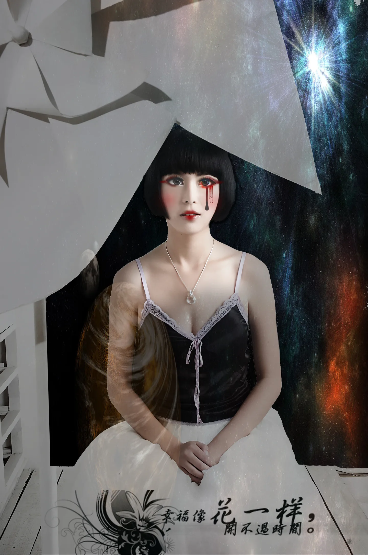 苏苏 我爱你! 如果把腮红去了 红的那些都变成黑色 我觉得更有哥特的感觉啊!红色有点鬼片 哈哈哈