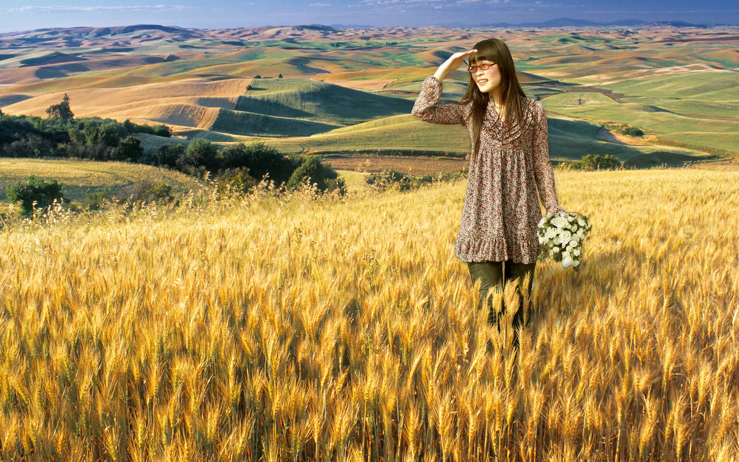 可以帮我换一下场景么,希望是麦田。 嘿嘿嘿 手里的瓶子去掉。。。。 色调梦幻的那一种 谢谢您呐!!! 艺术化:轻微艺术化 基调:典雅唯美