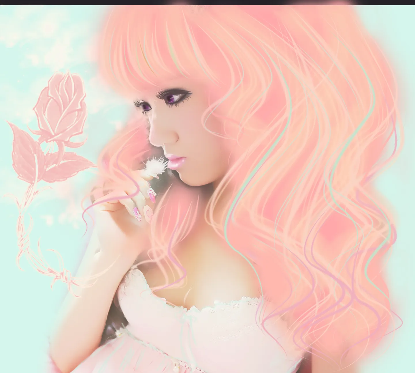 粉色的头发很有爱的说