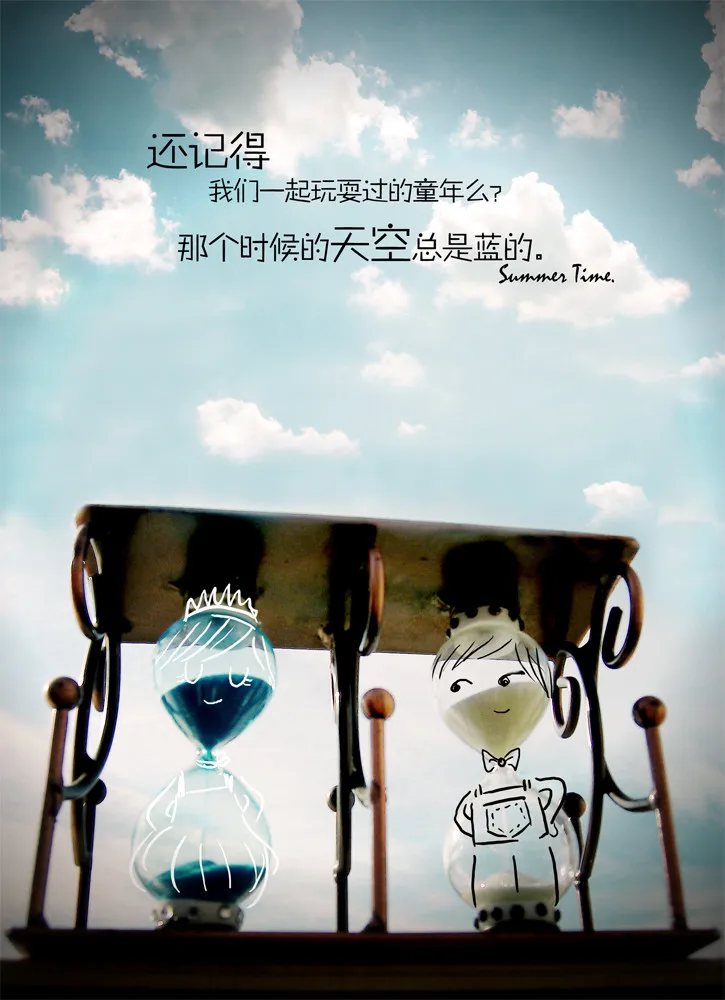 这一次的沙漏吸取教训,没有窗帘当背景,背景可是天空哦,本人冒着把沙漏摔坏的危险在阳台上拍的..可以适当加一些字,要阳光的爽朗的感觉。可以自由发挥!谢谢,期待您的佳作!