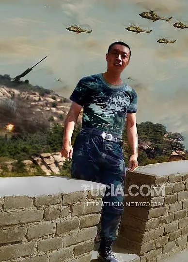 改成迷彩装要07式夏装,背景改成战场。战场要求真实可信