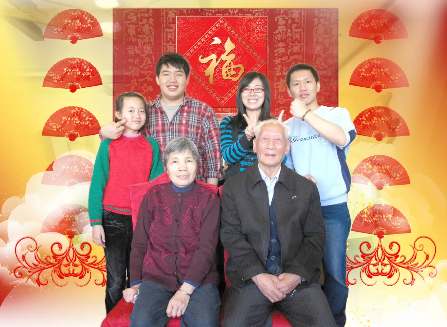 温馨的全家福,美化眼镜女孩