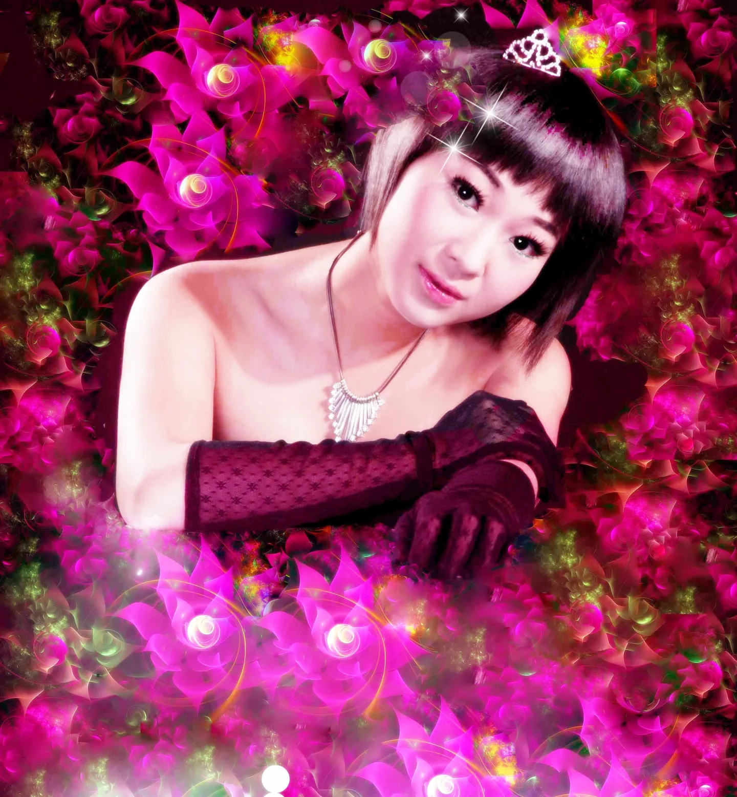 肤色调亮一点。换个漂亮的背景,显得清纯唯美一点。谢谢