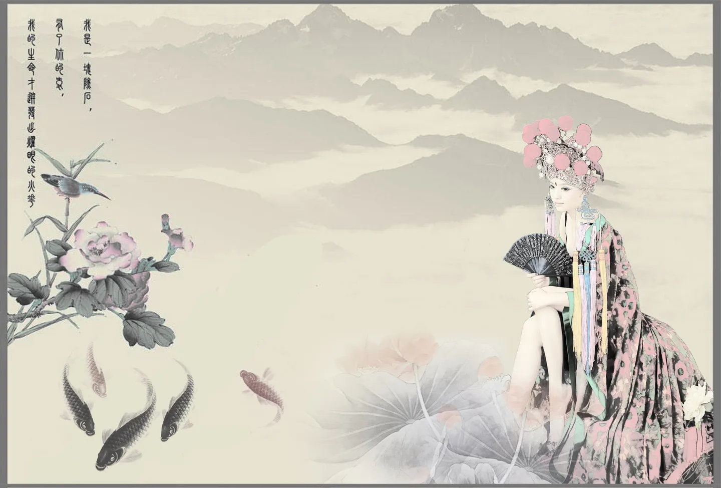 真的很像画,把衣服颜色调整的跟底色那么接近,确实梅花枝略黑略粗有点抢眼球