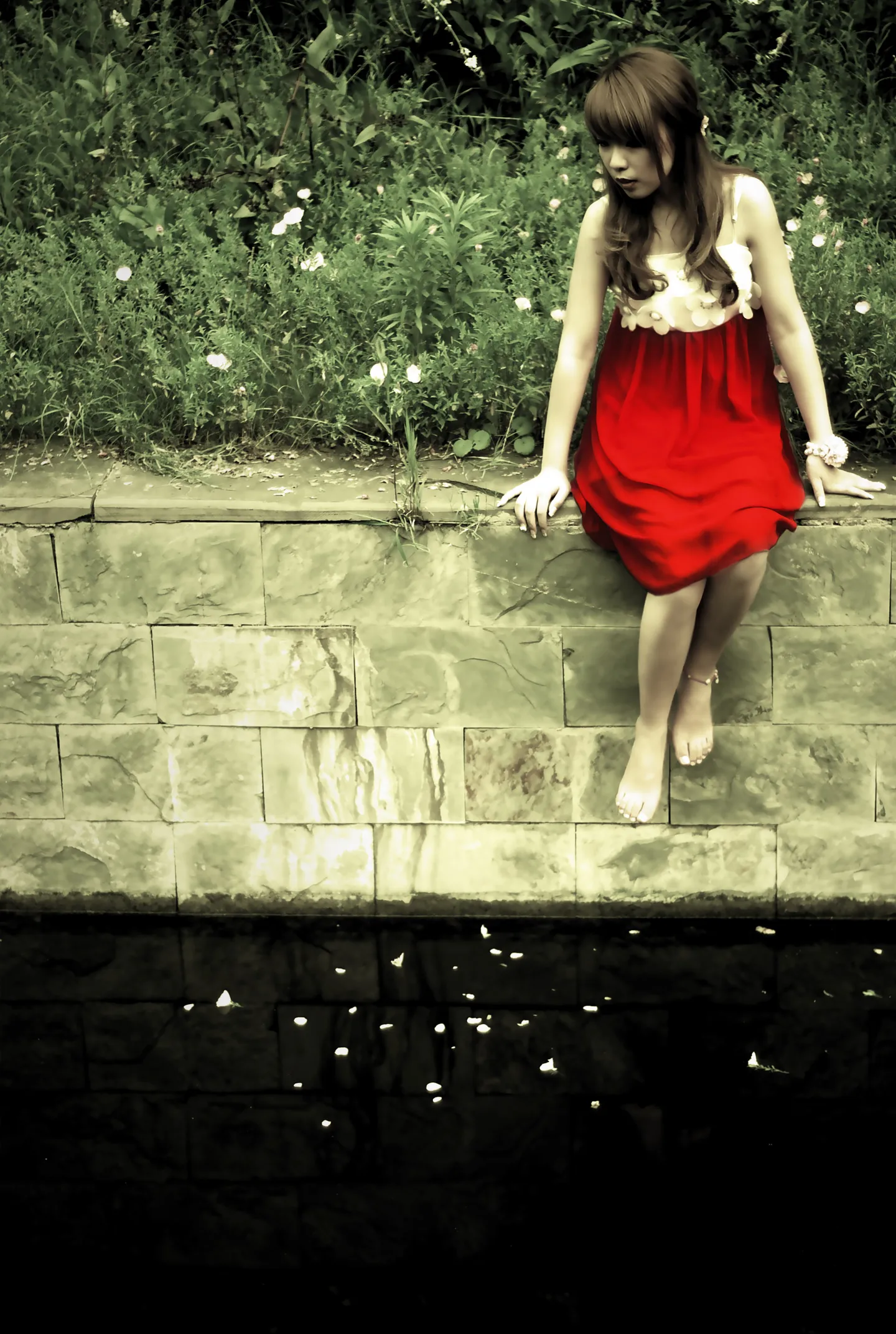 人 倒影 水中花瓣。。能这么弄。?希望有感觉的接下 不要刷图的..谢谢了