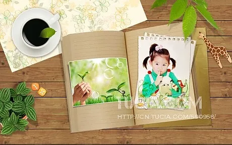 把这张素材图与我的另一张宝贝照片完美合并,使宝贝出现在书页空白处。
