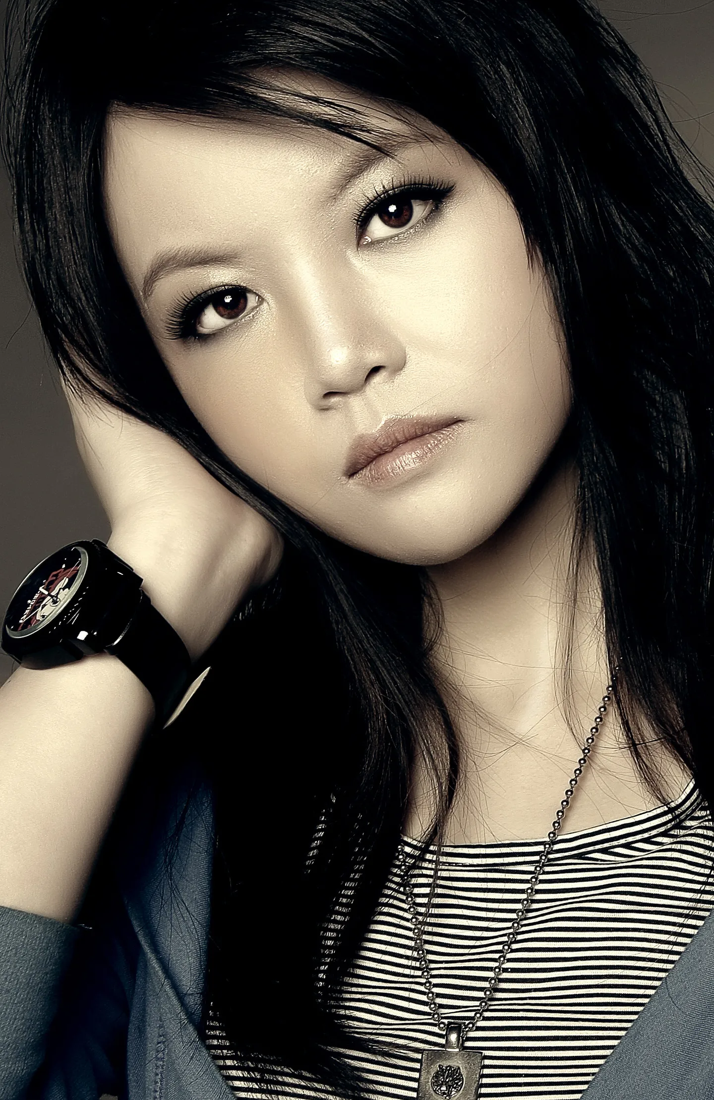 色调的印象,模特的神态温婉而有杀气