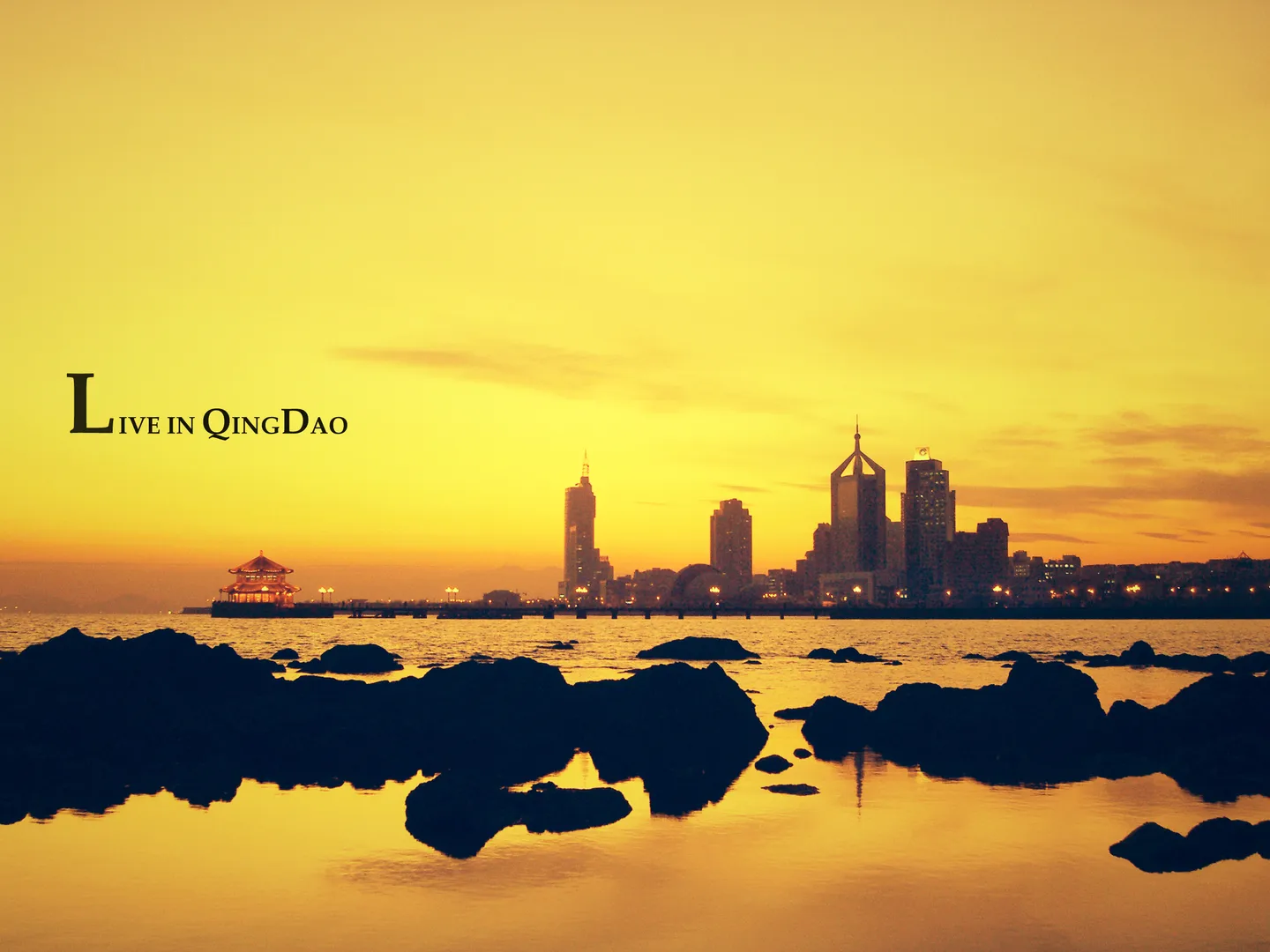 青岛栈桥夜景剪影 天空有点灰 毕竟是傻瓜机拍的 求调色 求美好 勿刷
