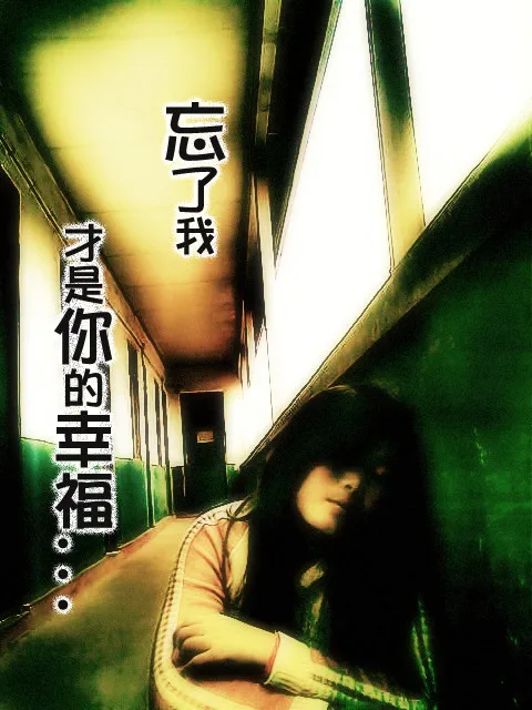 改成颓废的风格,人脸弄清晰一点,整个色调改成颓废的,写一些字在上面"忘了我才是你的幸福",背景不要弄朦胧
