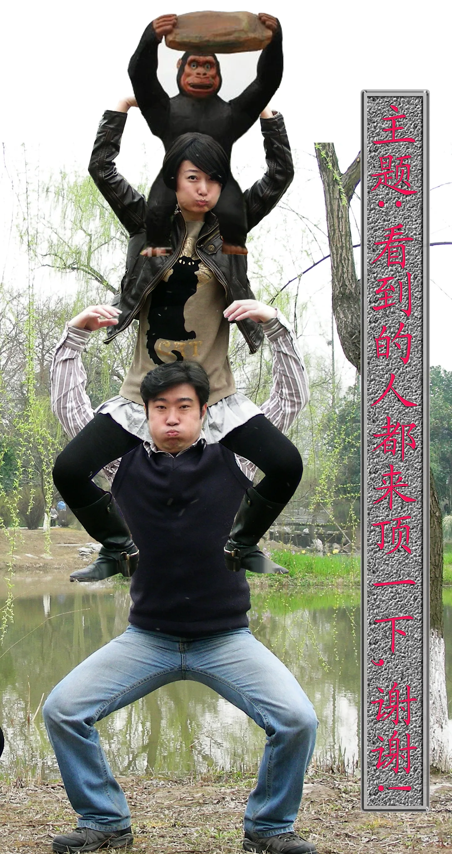其实这个图我想在猴子顶着的石头上再加点什么,一下子没想出来...总觉得还可以再加点什么东东...谁帮我想想撒...