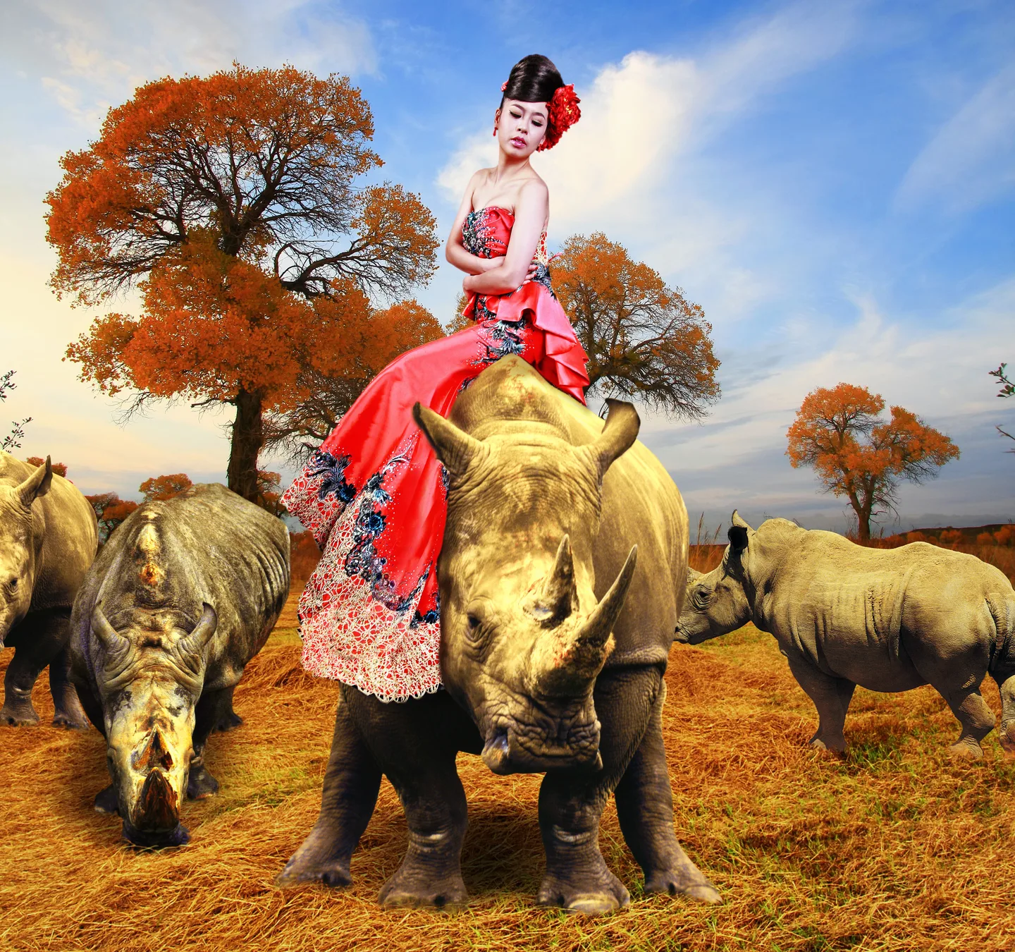 刚从泰国回来坐了大象这回又坐犀牛拉哈哈