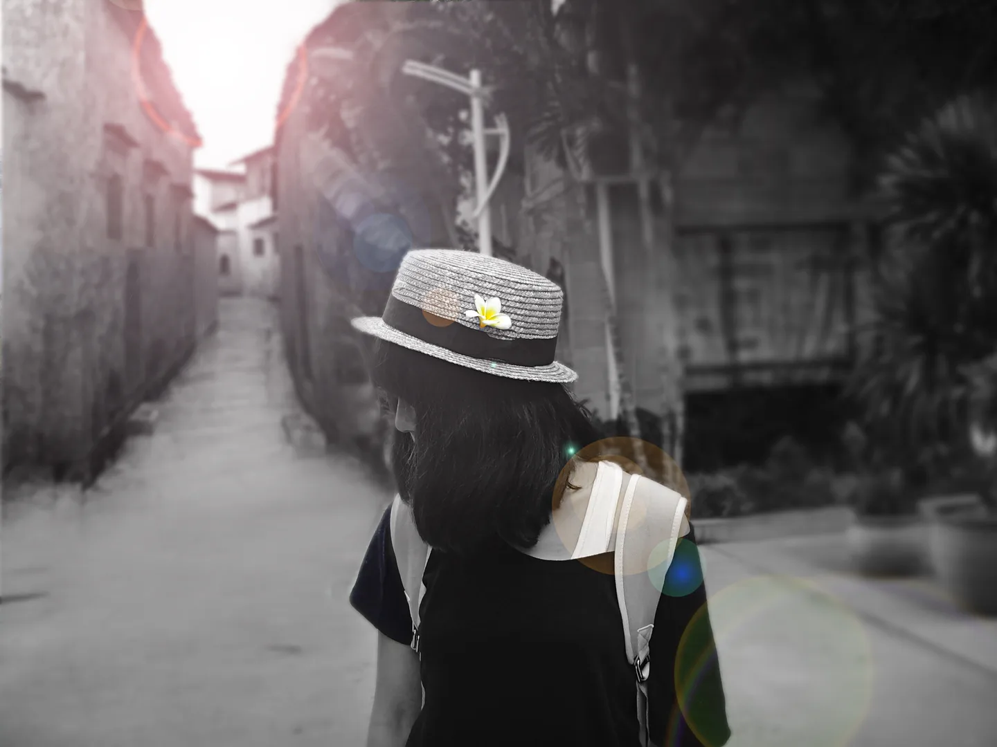 突出帽子上的花, 换一个好看的背景 提亮色调 艺术化:轻微艺术化