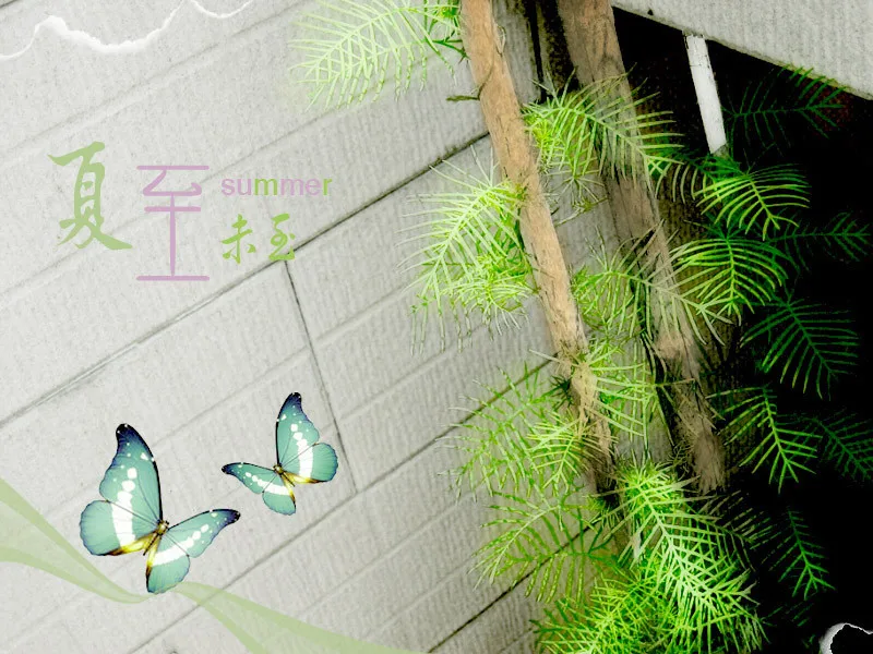 是这个吧~~把右边叶子后面的一条黑线去掉,爬藤所在的小竹竿颜色深点,古老一点。不过绿色的植物要显得新鲜嫩绿,有对比感。左边空着的墙随意发挥,可以加字。谢谢咯~~暄好期待啊!