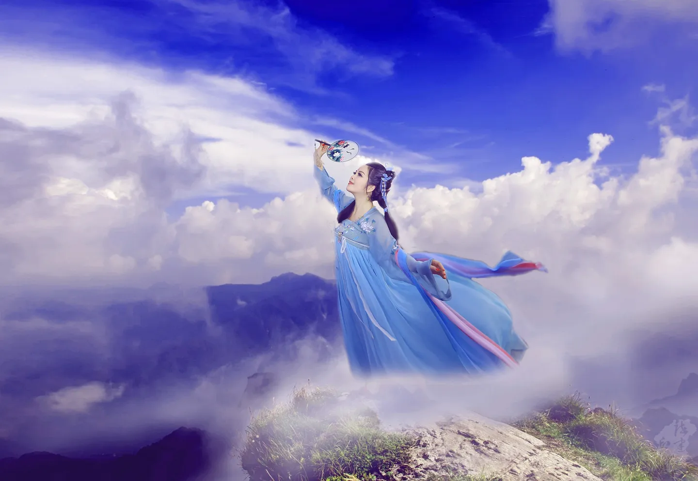 哇~飞起来了!飘飘欲仙啊~~云海背景和人物动作配合挺和谐的,感谢大人!!