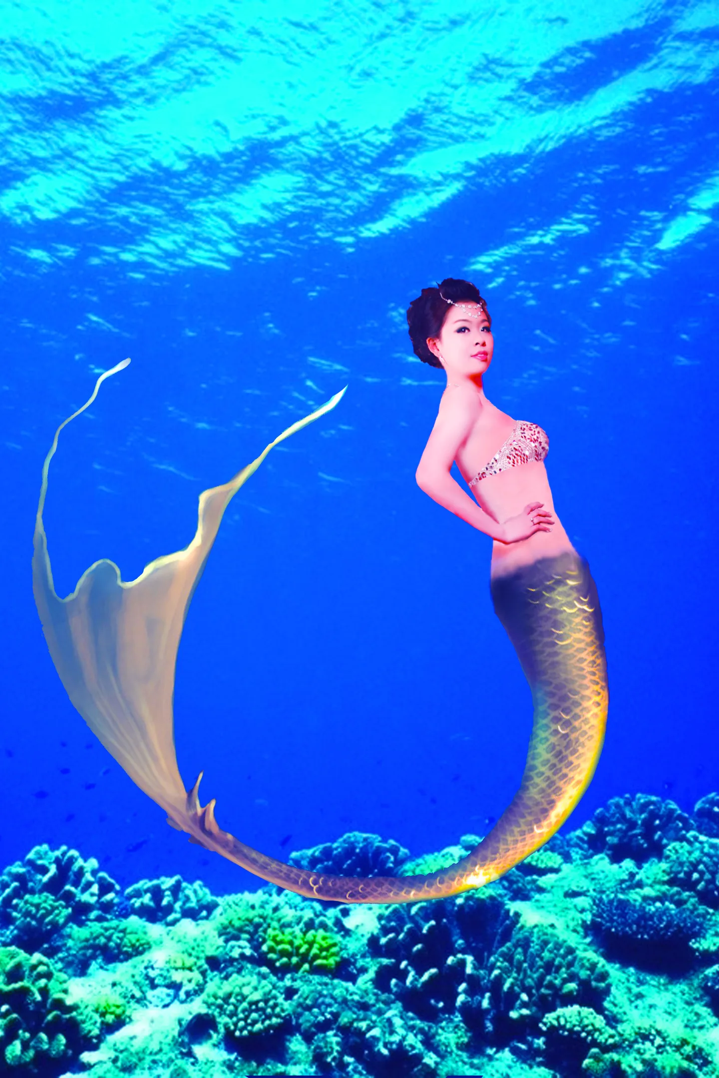 换一个好看的背景 艺术化:深度艺术化 能做成人鱼更好期待有大师接图哦谢谢啦