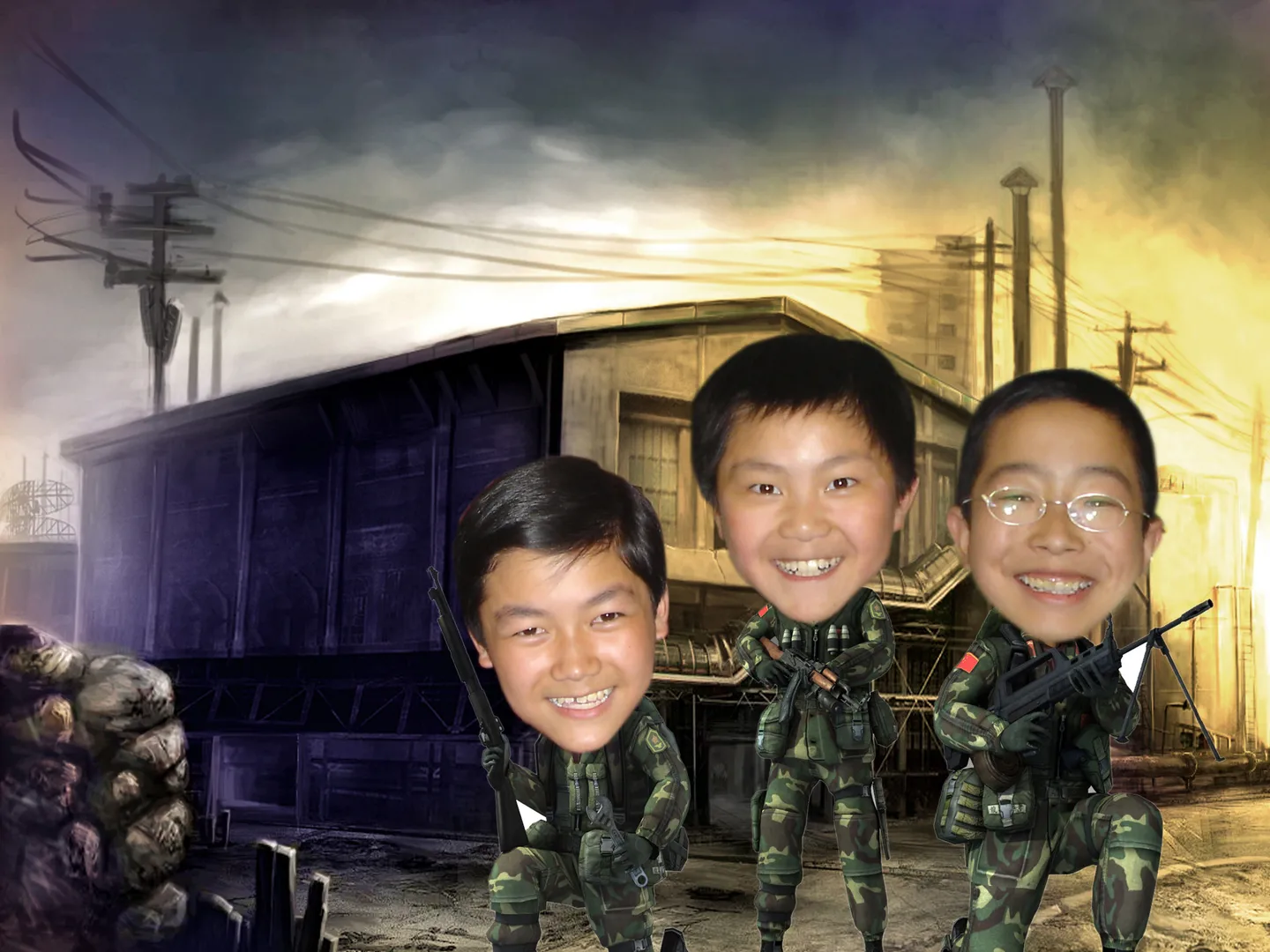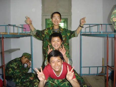 背景换个 军训的地方 军训 旁边的低头的男的去掉 把三个男的随便改 改什么都行 要个好看的 很帅的 谢谢您 帮我改~~ 用途:网络征友 基调:典雅唯美 背景:稍作调整