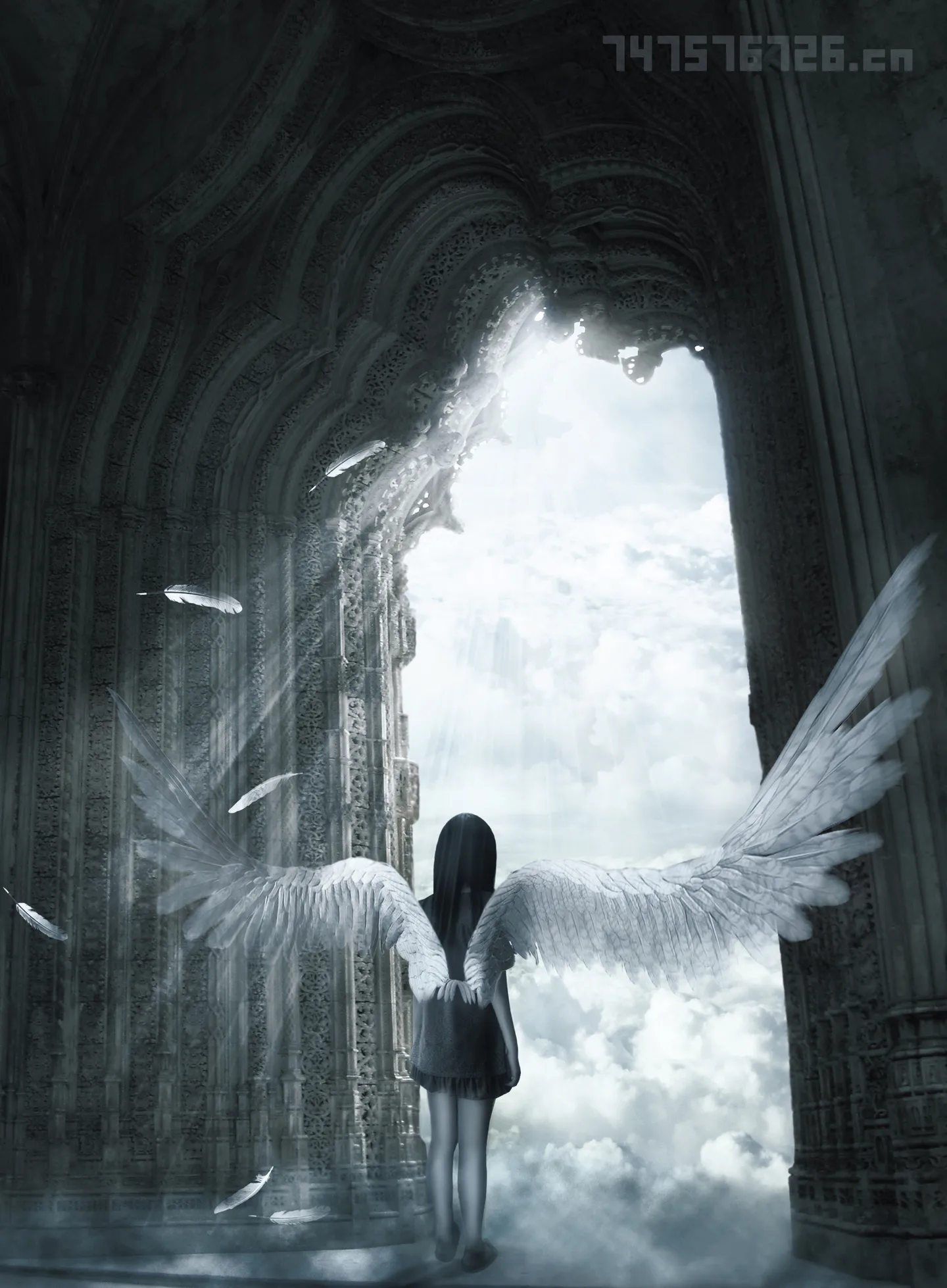 这图我也做过,人物与门之间的距离可以适当再调试一下,使得光线照在人身上,那样看起来意境更棒!