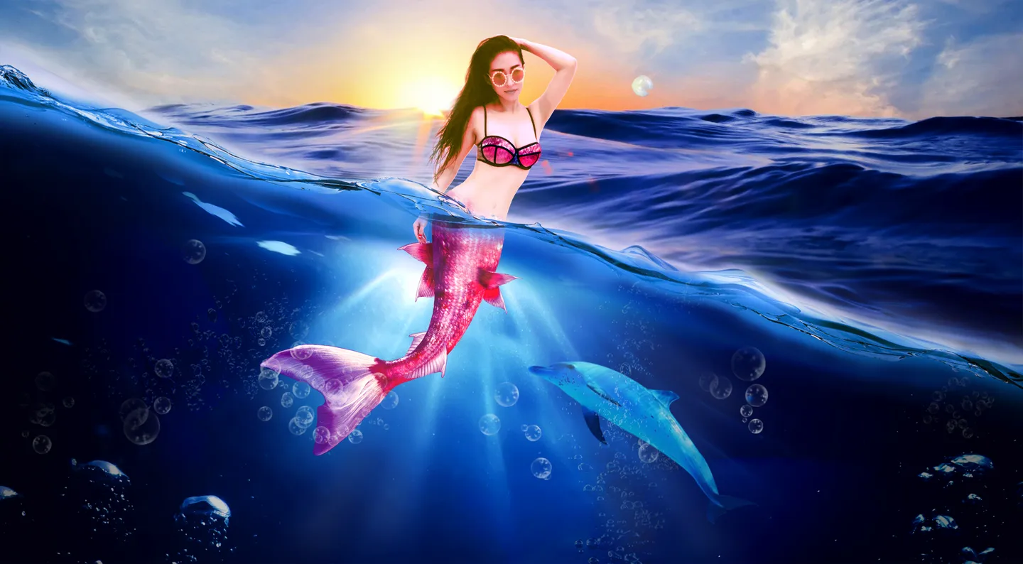 变美人鱼啦好艳丽的感觉…哈哈鲨鱼还是在呀 (表情)