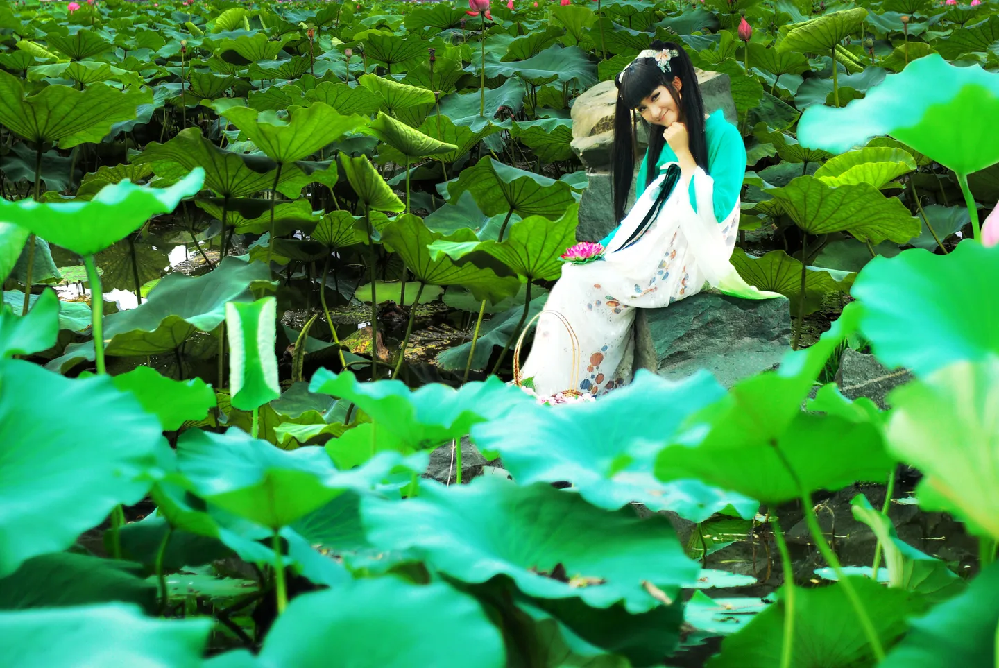 能否修个背景 变成正片荷塘?