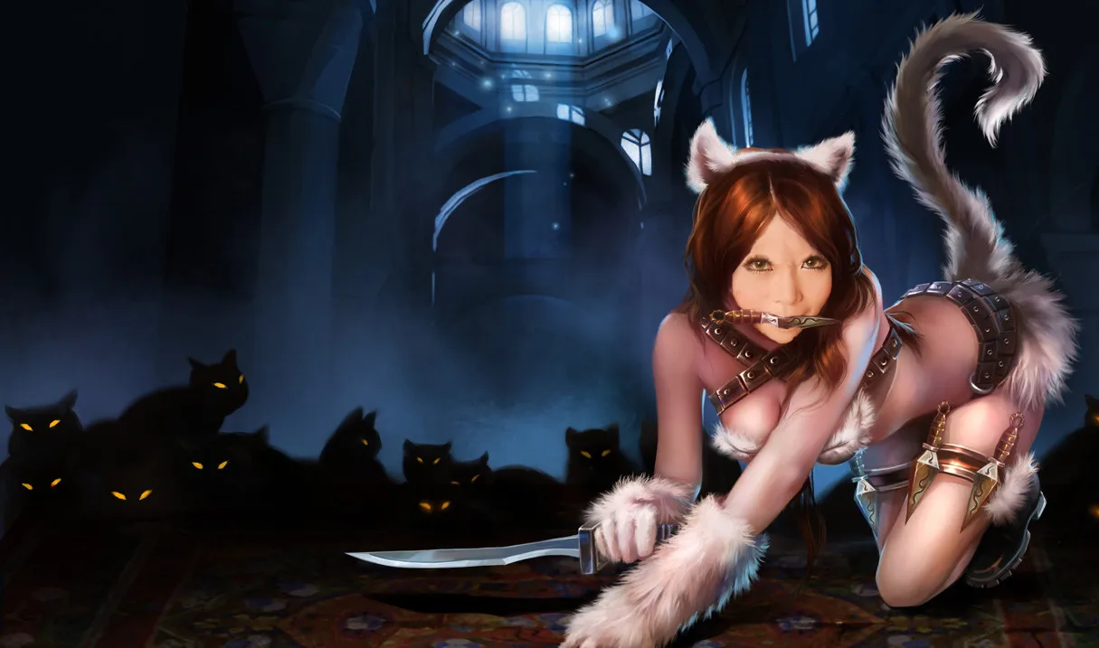 我看到你那个猫耳当时就想到这英雄联盟的猫女的皮肤。。情不自禁就合成了